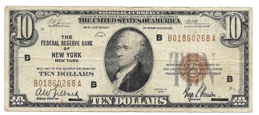 Signatures: Jones/Woods. S/N: B01860268A, plate D170/228. Federal Reserve Bank of New York, New York. Portrait of Alexander Hamilton at center.