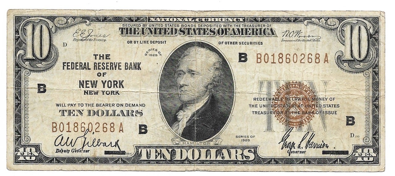 Fr. 1860B, Ten Dollars, Series of 1929, W-1731-B, VF