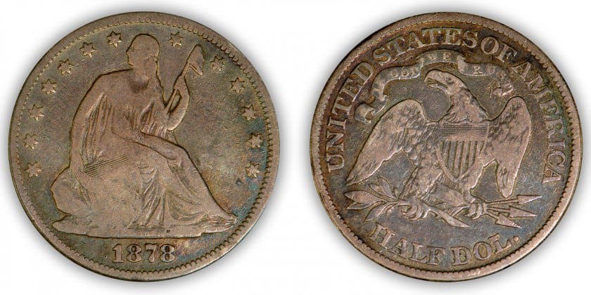 Rev: UNITED STATES OF AMERICA / HALF DOL., bald eagle with wings displayed, supporting U.S. escutcheon, IN GOD WE TRUST on a ribbon above