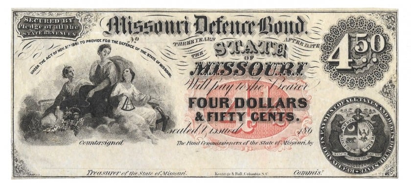 Missouri, 186_, "Missouri Defence Bond," $4.50, Cr. 15